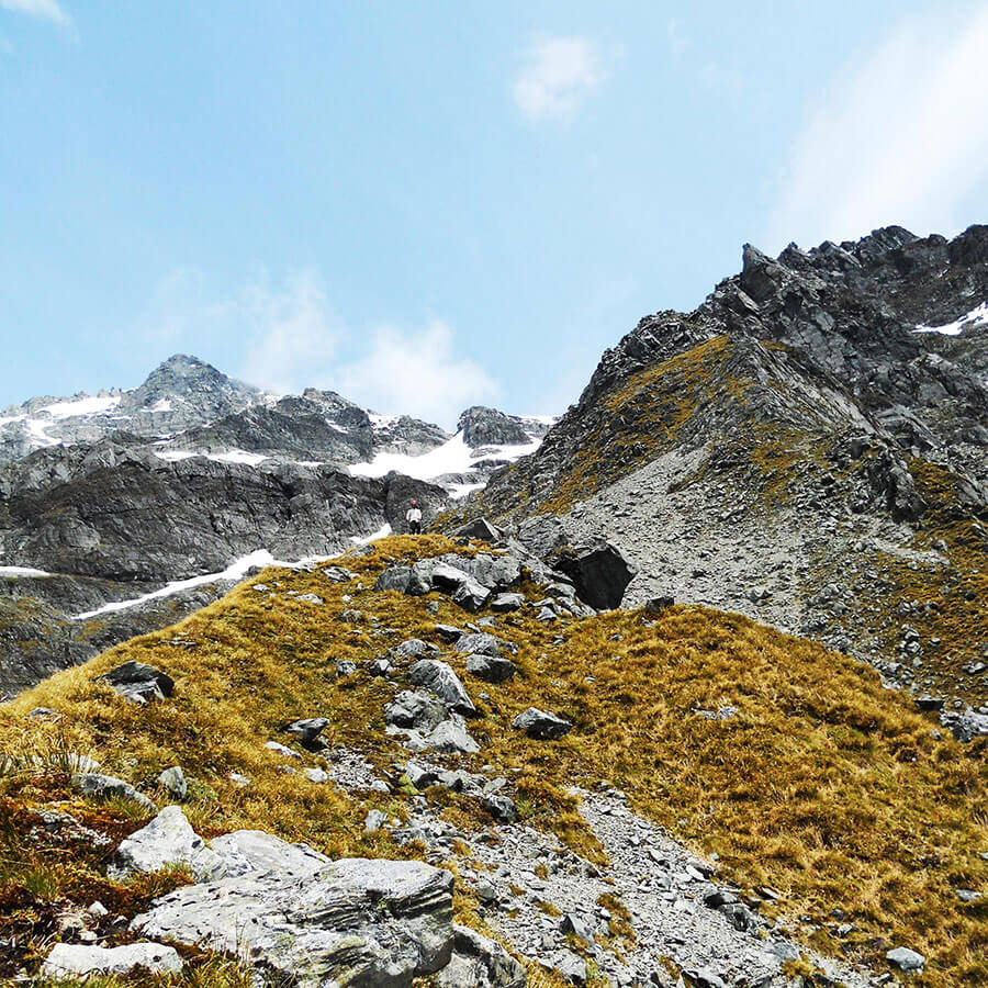 Unfortunately, halfway up to the saddle I also managed to crush my hand under a rock whilst traversing the scree which caused blood to spurt out from under my fingernail. Not a pretty sight and one of those inexpiable types of pain with not much there to show, but a huge amount of nerve damage.
