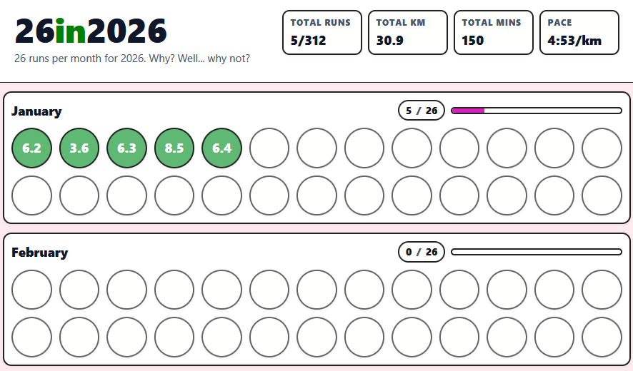 Because a paper training diary just isn’t good enough any more. I’m tracking my running again after ditching wearing the Garmin every second of every day. This way is much more fun and means that I only have to run 26 times per month to keep on track. Woop Woop.